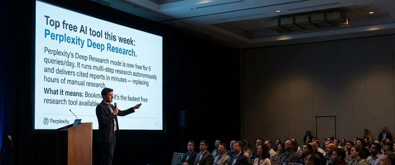 Perplexity's Deep Research mode is now free for 5 queries/day. It runs multi-step research autonomously and delivers cited reports in minutes — replacing hours of manual research.